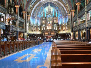 Rendez-vous sur la Place d’Armes où se tient une statue de Paul de Chomedey de Maisonneuve, l’un des fondateurs de Montréal. Cette place abrite la magnifique basilique Notre-Dame, un chef d’œuvre d’architecture néo-gothique, elle est l’un des monuments les plus connus de Montréal. Dans l’une de ses deux tours, elle abrite l’une des plus grosses cloches du monde. Dedans vous découvrez toute la richesse de ses boiseries qui habillent les murs, la pureté de ses vitraux qui résument l’histoire de la ville ainsi que les motifs des feuilles d’or de sa voûte et ses colonnes sculptées.
